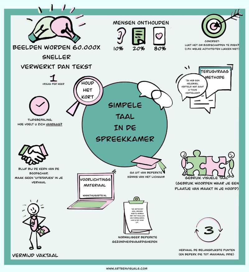 Afbeeldingen zeggen meer dan woorden. Wist u dat 80% van de informatie gegeven door uw arts in de spreekkamer wordt vergeten? Afbeeldingen zorgen dat meer dan 65% van dezelfde informatie wordt onthouden. Aan de slag dus! Daarom teken ik handgemaakte digitale tekeningen om de zorg en het menselijk lichaam begrijpelijk te maken. Wil je jou gesprekken in de spreekkamer met meer effectieve kennisoverdracht? Ga naar mijn webshop of vraag mij een illustratie te maken.
